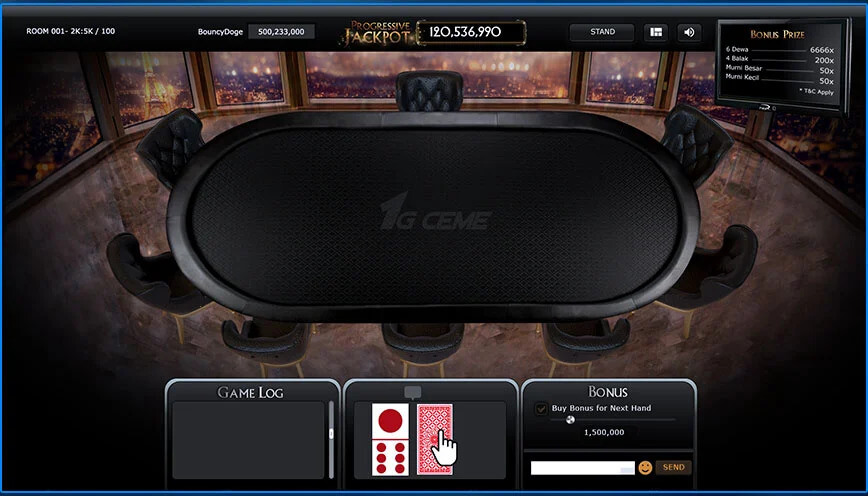 Taruhan pemain yaitu : Kecil sebesar Rp 100.000 dan mendapatkan kei 10%. Artinya kalau member menang, member mendapatkan hadiah tambahan 10% dari nilai taruhan.