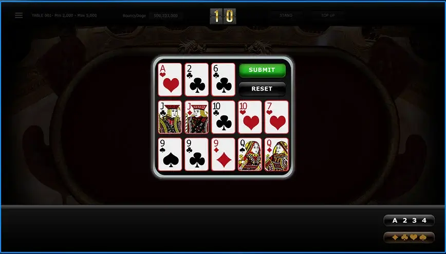 Pemain: A 10 5 (High Card As dengan simbol Keriting)