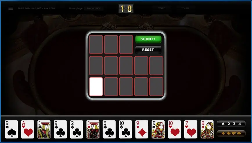 Bandar: 5, 6, 7, 8, 9 (simbol kartu 9 adalah Hati)