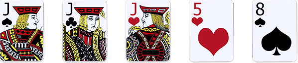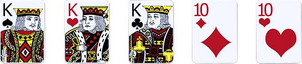 Peringkat Full House ditentukan dengan membandingkan Three of a Kind masing-masing tangan.